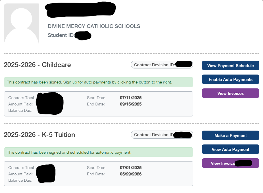 It has come to my attention that many of you may be thinking your tuition and Childcare (before/aftercare) payments are on autopay and they are not. Please login to your portal